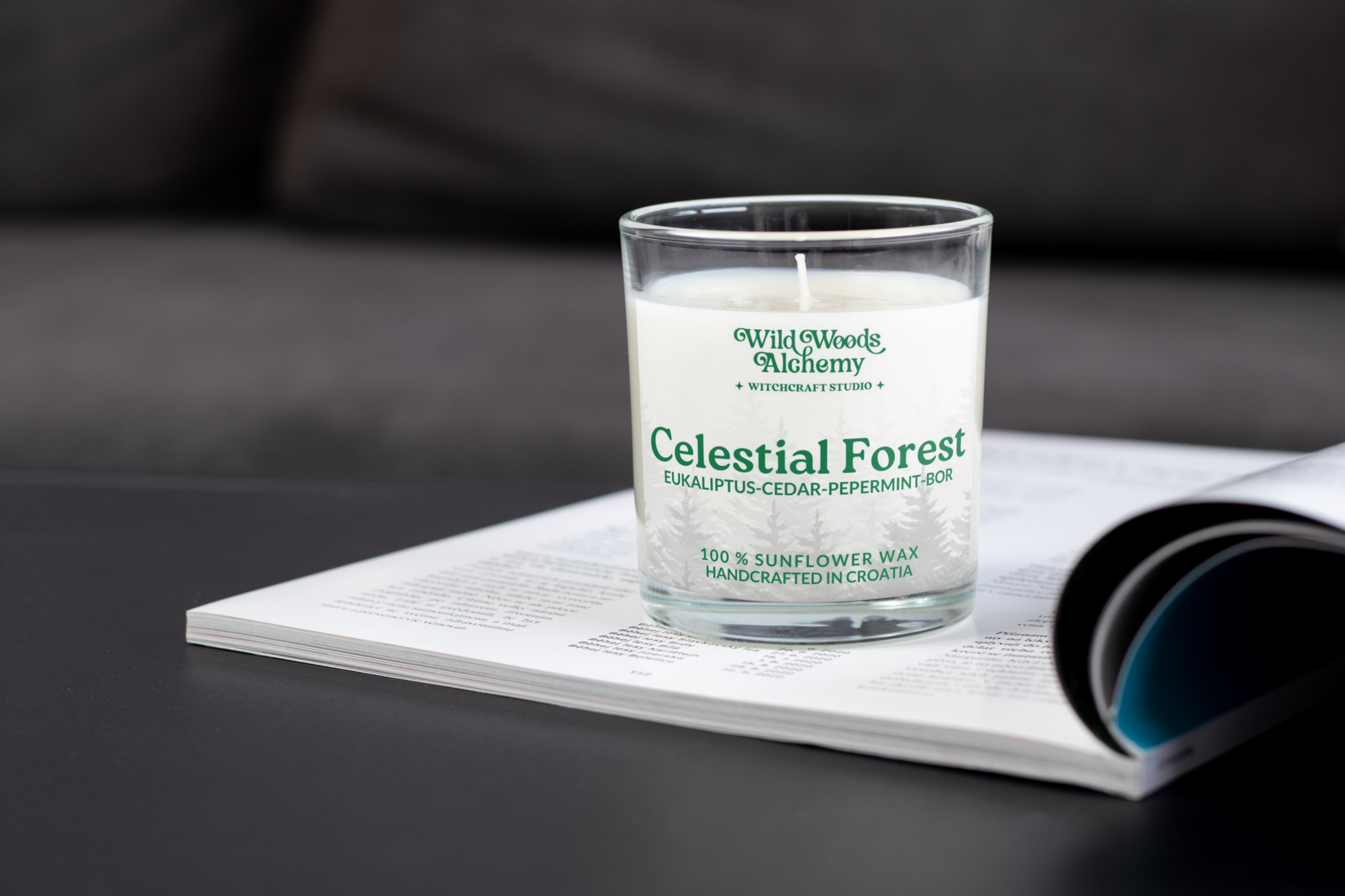 Između zvijezda i tamnih krošnji skriva se Celestial Forest – svijeća koja donosi svjež, hladan i pomalo mističan šumski miris. Idealna za ljubitelje čistih, prozračnih i energizirajućih aroma.