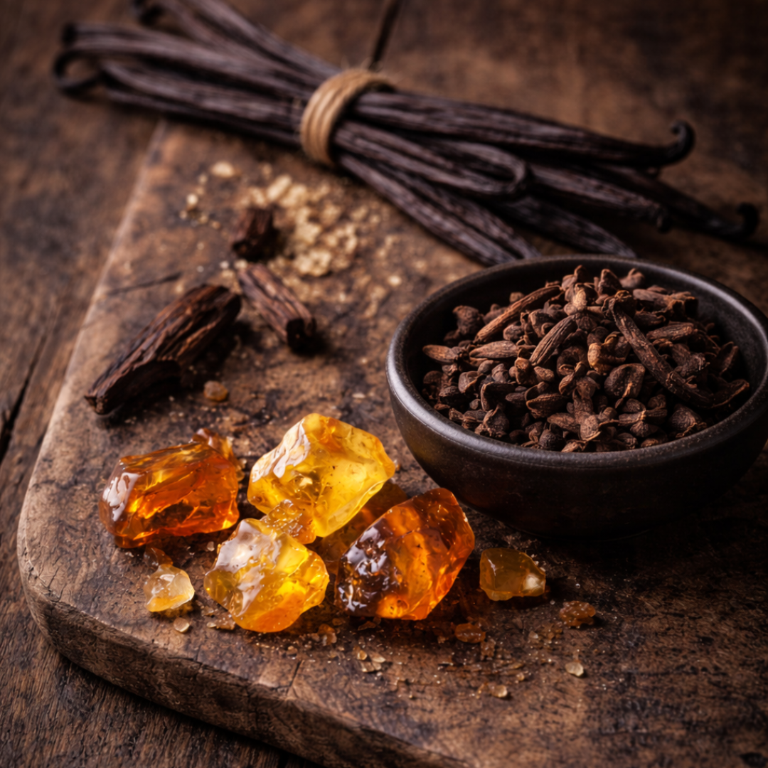 Zavodljiv spoj jantara, začinskog klinčića i meke vanilije. Miris se otvara laganom slatkoćom i toplinom, zatim prelazi u blago začinsku dubinu koja prostoru daje karakter, ali bez težine.